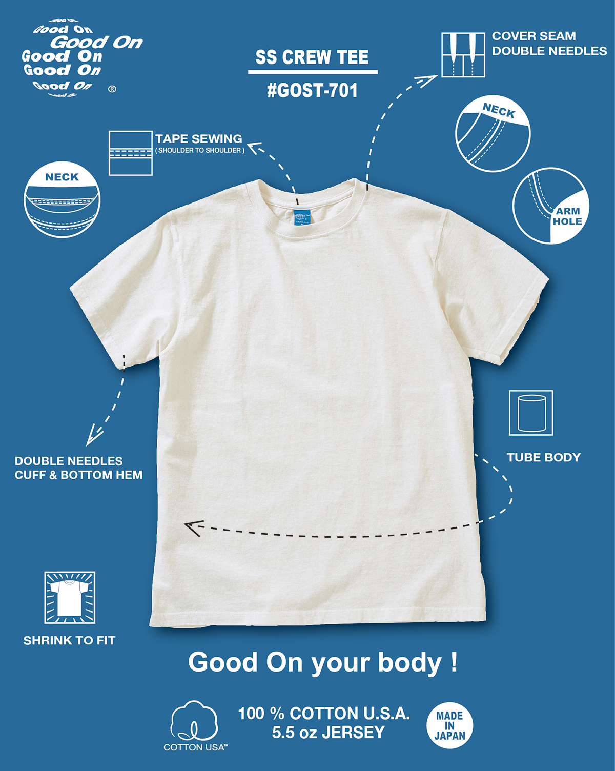 GOOD ON Crew Tee ‹ Reactive Dye › ╭ 3色 ╮