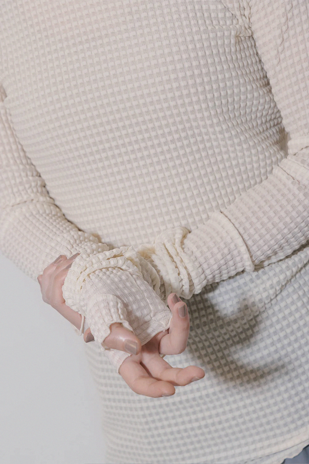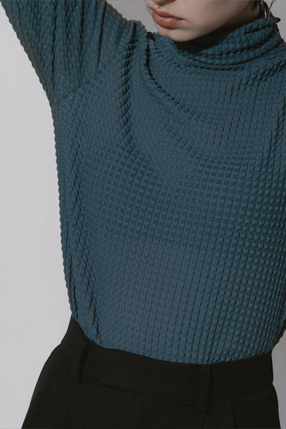 J.P.L. 高領維希格紋透紗指孔內搭上衣 ╭ 2色 ╮