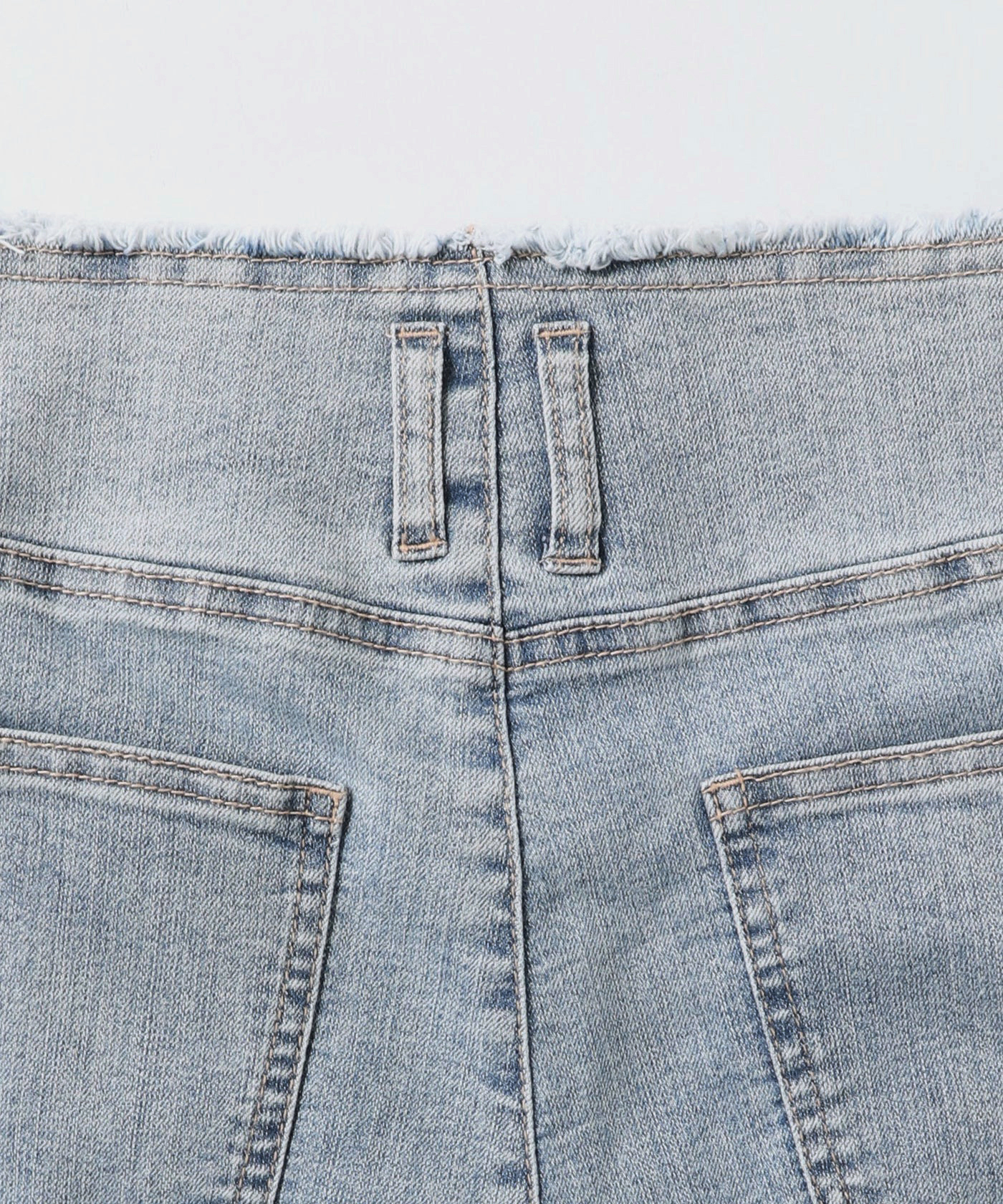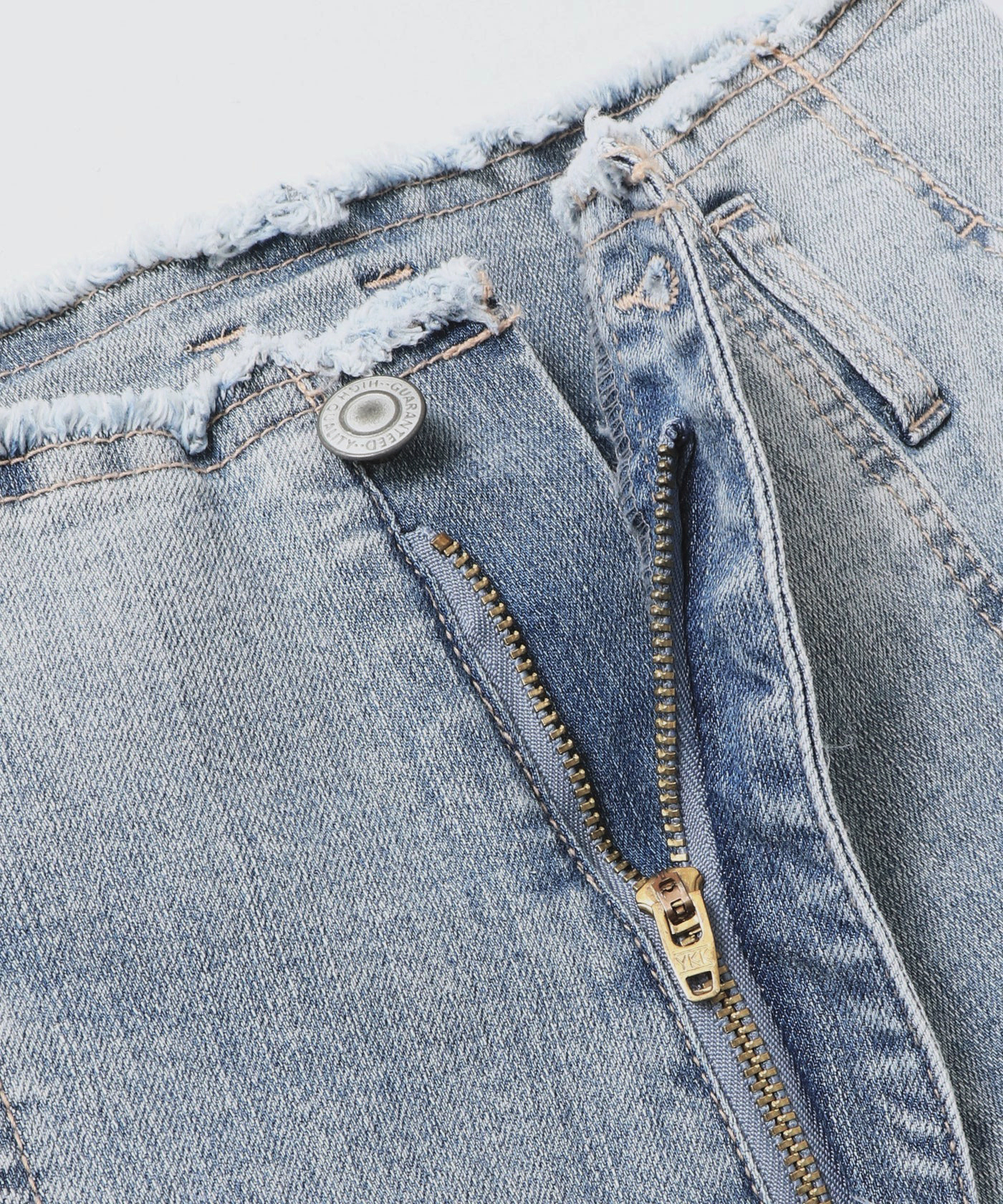 褲腰與褲腳處都使用抽鬚處理