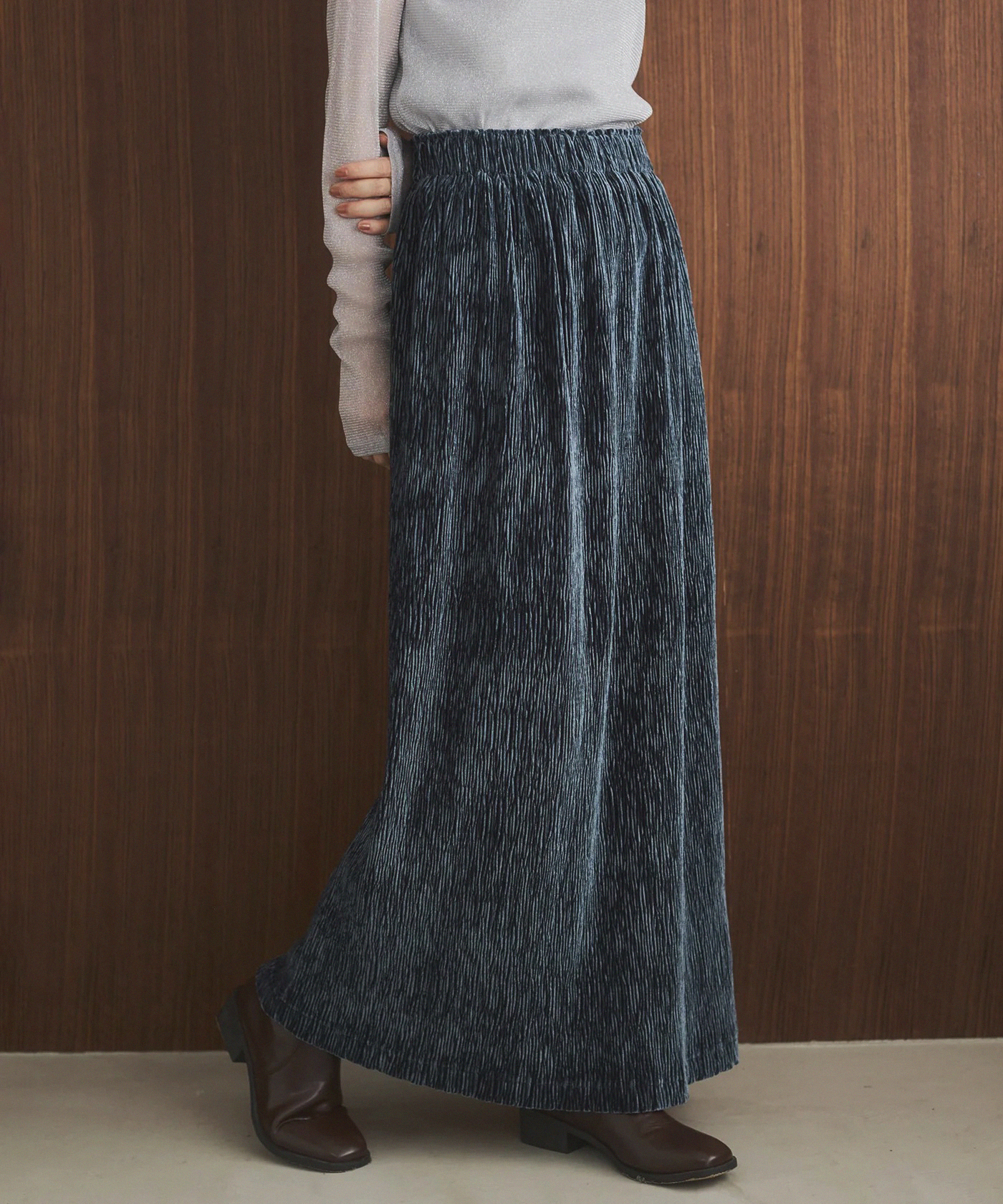 J.P.L. 高腰褶襉絲絨長裙╭ 2色 ╮