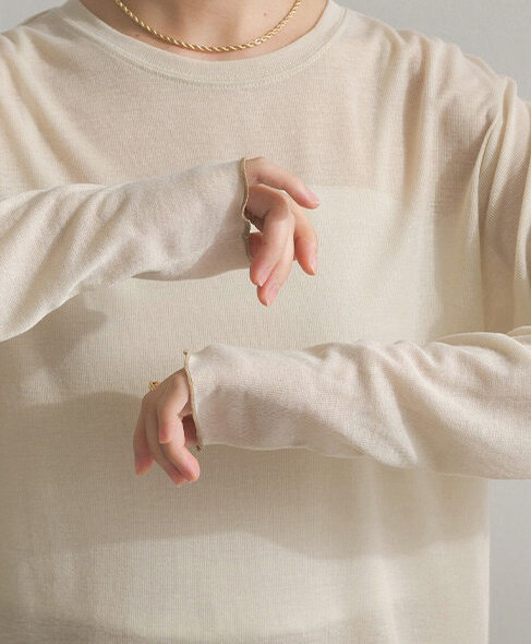 J.P.L. 圓領捲邊羅紋透膚上衣 ╭ 3色 ╮