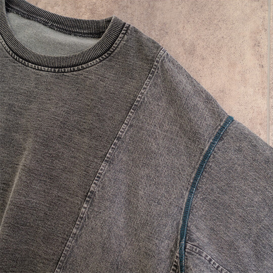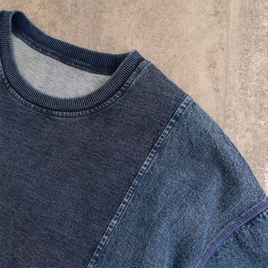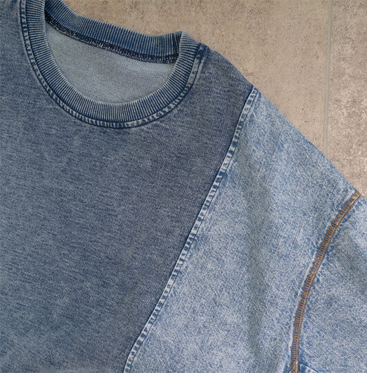 J.P.L. 圓領八分袖拼接水洗丹寧上衣 ╭ 3色 ╮