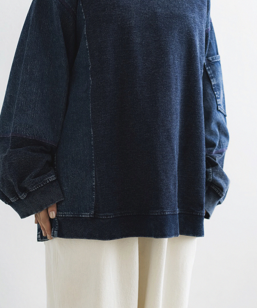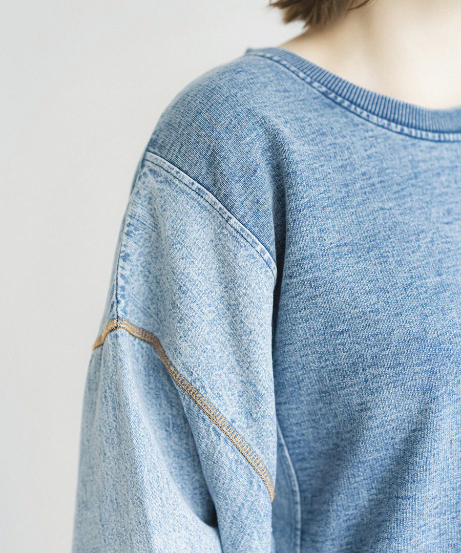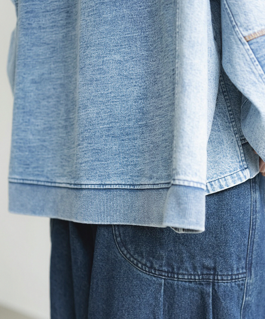 J.P.L. 圓領拼接水洗丹寧寬袖上衣 ╭ 3色 ╮