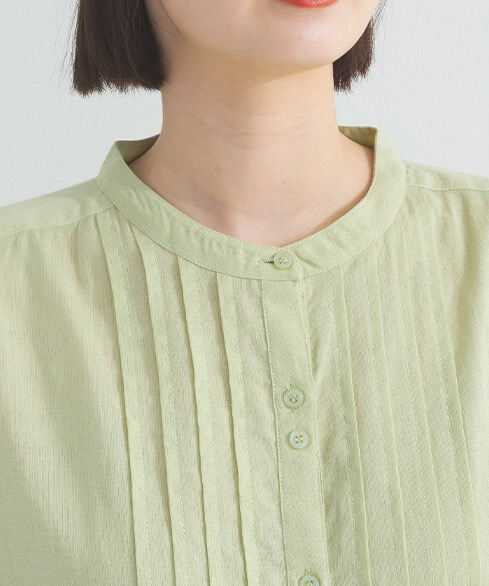 J.P.L. 立領法式袖亞麻棉壓褶長襯衫 ╭ 2色 ╮